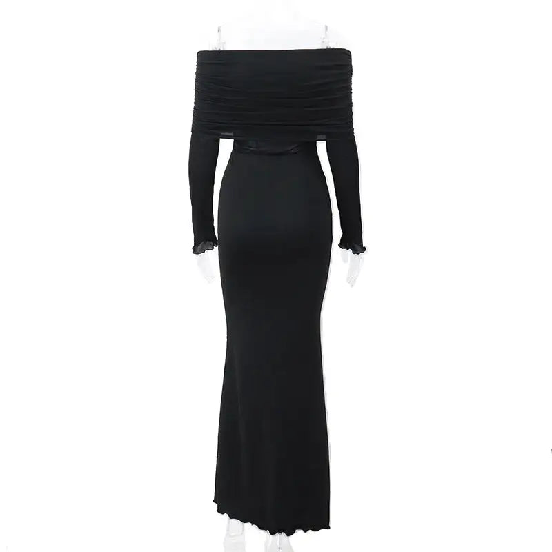Indulge in sheer elegance with our black long sleeve off-shoulder strapless party dress. Meticulously crafted to highlight your silhouette, it ensures you exude confidence and allure wherever you go, from cocktail gatherings to romantic dates.
