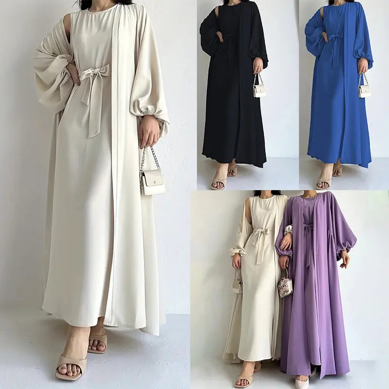 Step into Ramadan with grace and sophistication in the Kebaya Ramadan Elegant Solid Two-piece Set Dress. This exquisite ensemble, featuring an open front coverup and tie waist abaya, offers a blend of traditional charm and contemporary style for the modern Muslim woman.