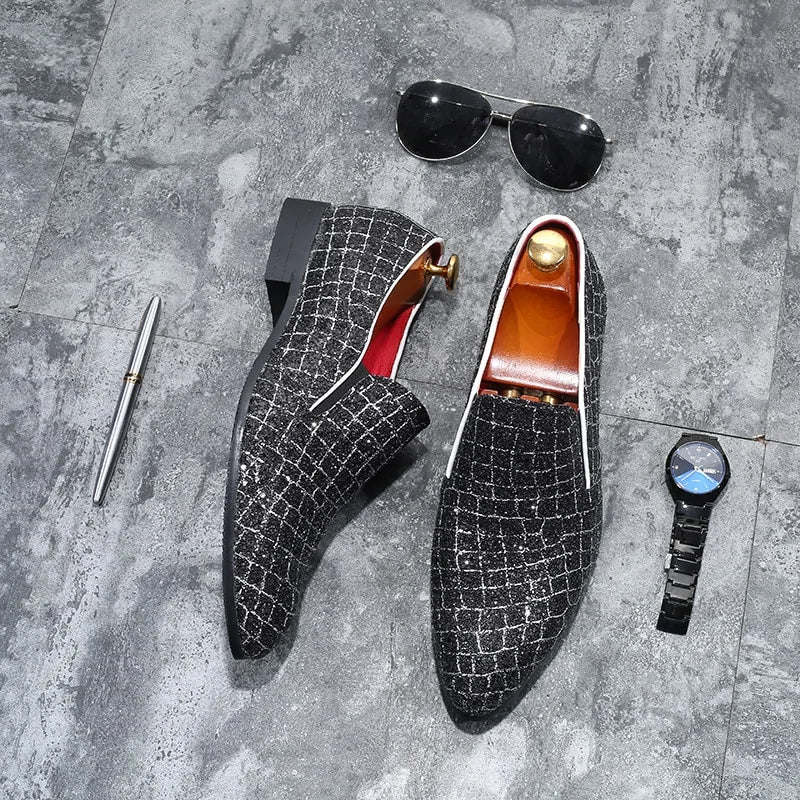 Elevate your footwear collection with our fashionable grids pattern leather loafers, adorned with shining sequins. These loafers blend comfort and sophistication, perfect for making a stylish statement wherever you go.