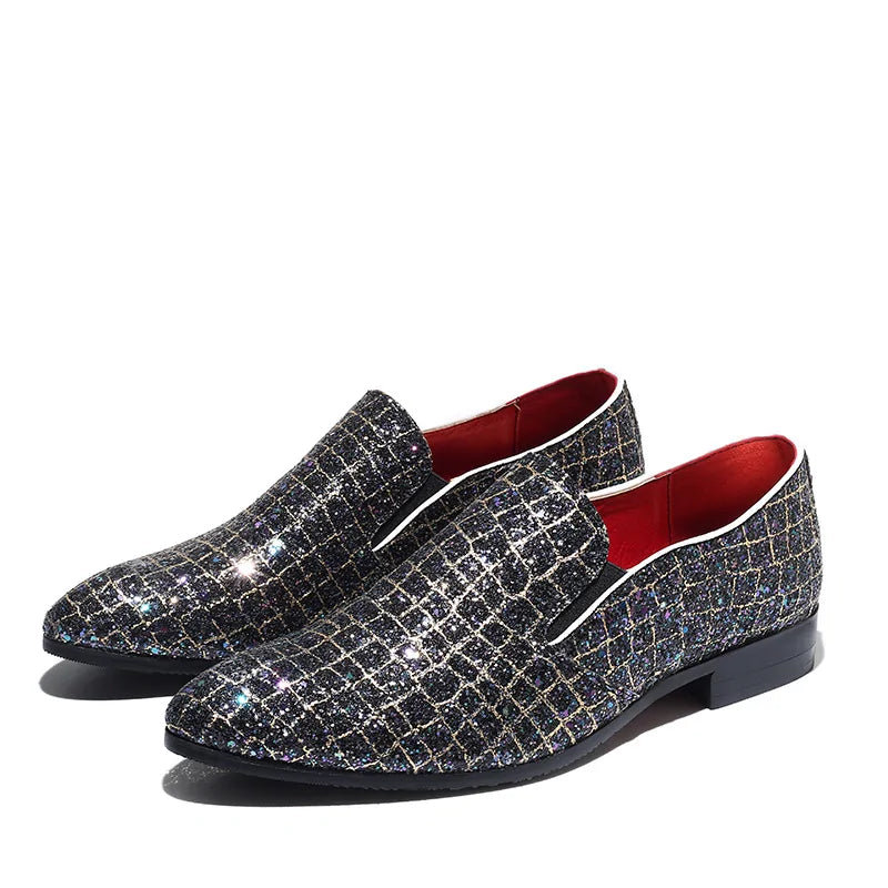 Elevate your footwear collection with our fashionable grids pattern leather loafers, adorned with shining sequins. These loafers blend comfort and sophistication, perfect for making a stylish statement wherever you go.