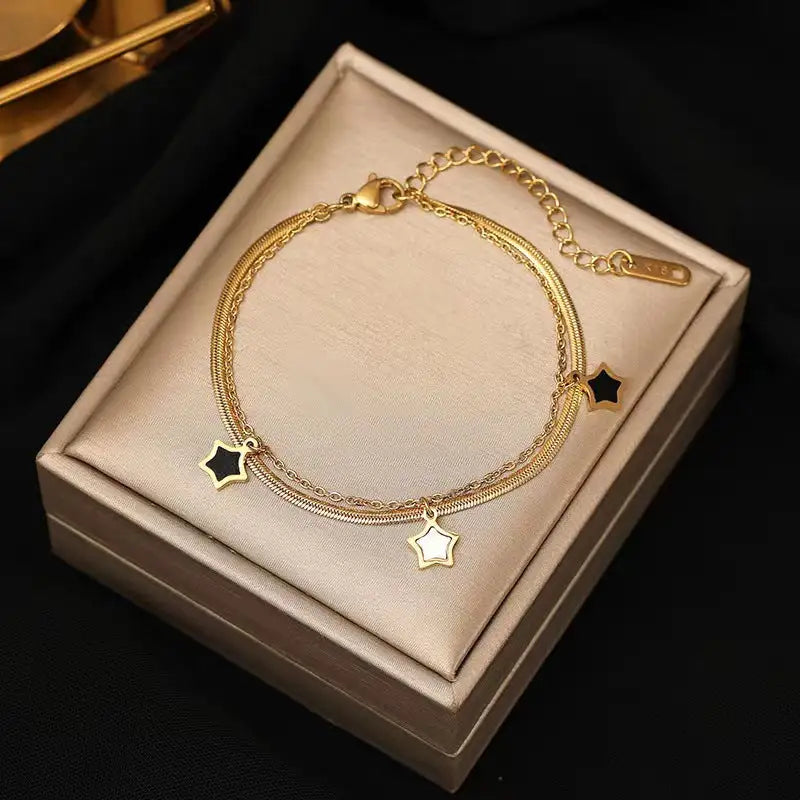Shine bright with our Fashion Geometric Titanium Steel Bracelet. Crafted from durable titanium steel and plated with precision, this bracelet is designed to stand the test of time while adding a touch of sparkle to your wrist.