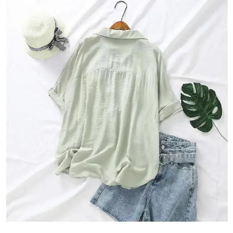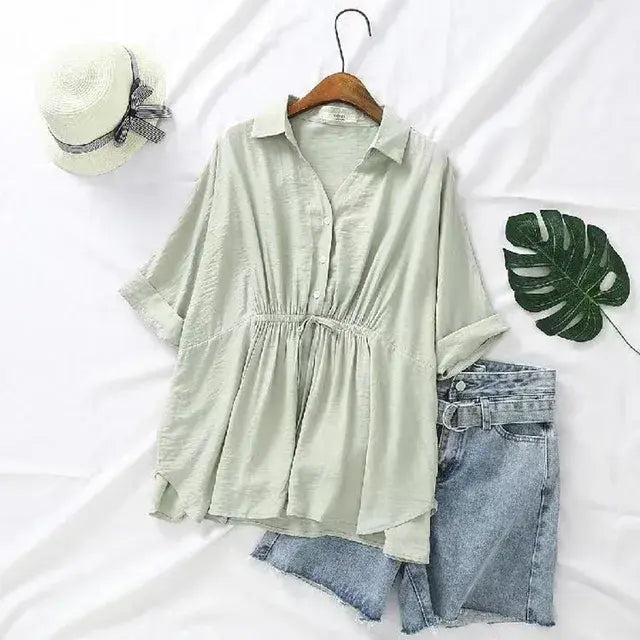 Step into motherhood with confidence in the Maternity Cotton Linen Blouse. Crafted from soft and breathable fabric, this blouse keeps you comfortable while maintaining a chic and trendy look.
