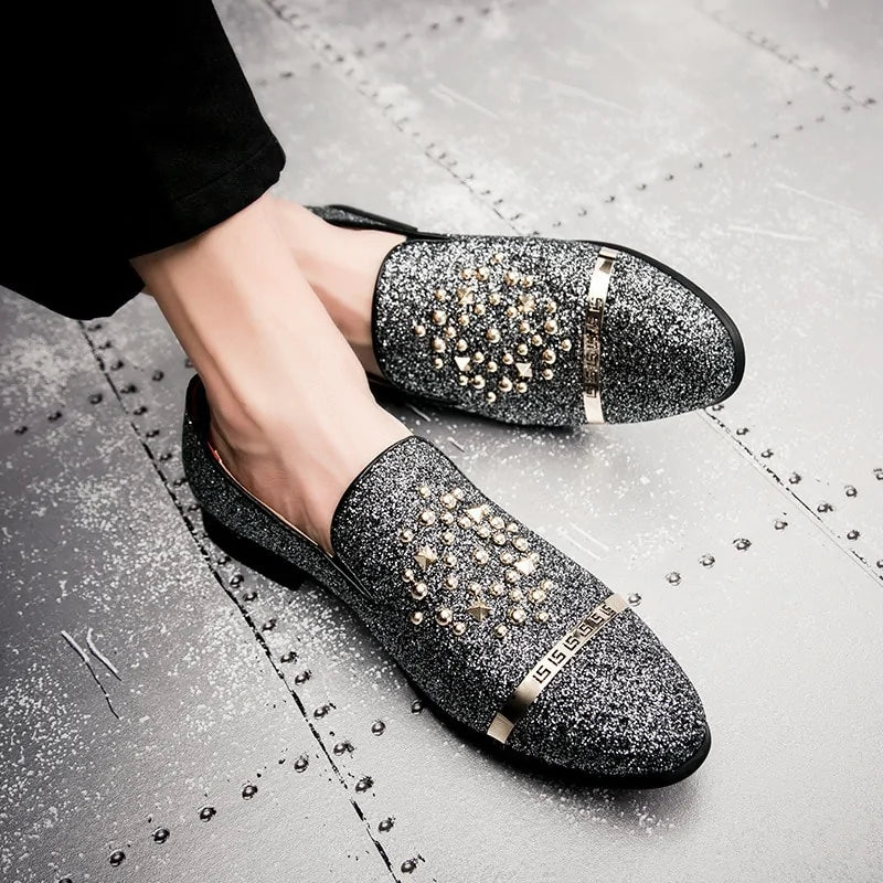 Introducing our Men's Diamond Rhinestones Loafers, where style meets comfort seamlessly. Crafted with precision and elegance, these shoes boast a unique design that incorporates diamond rhinestones for a touch of sophistication.