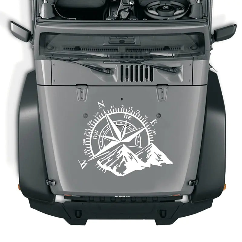 Navigate with Style: Mountains Compass Car Hood Sticker!