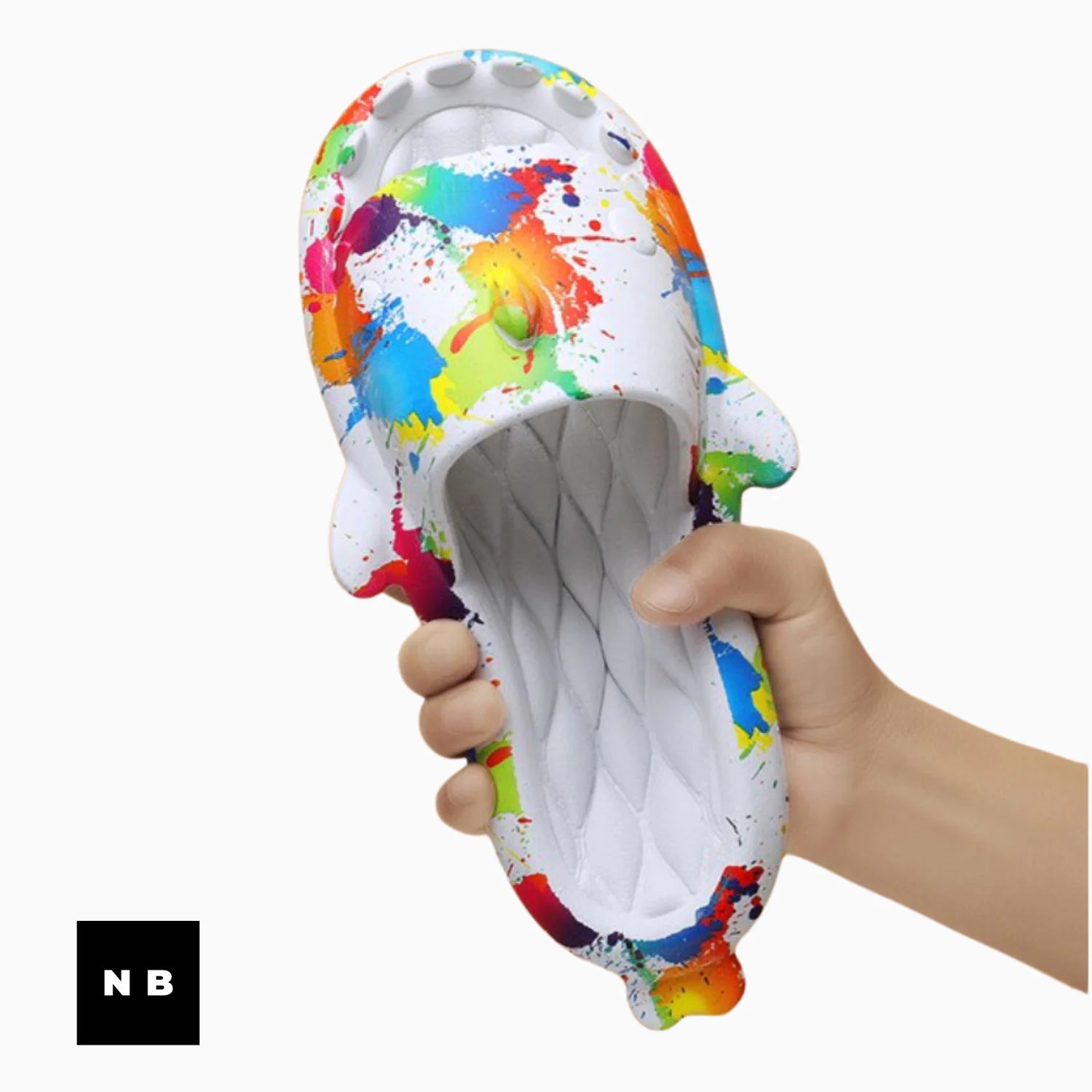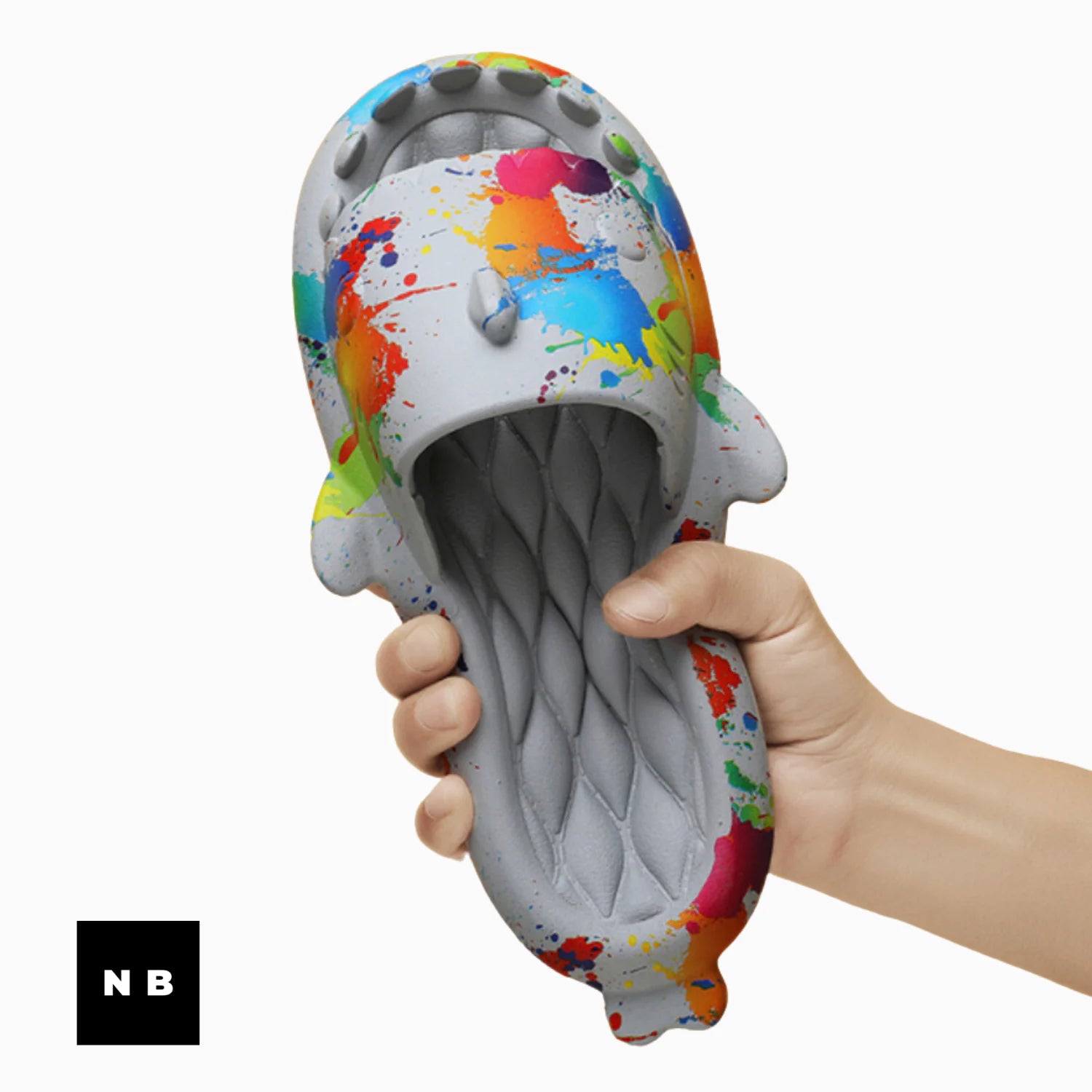 Indulge in cozy relaxation with Paint Shark Slippers. These whimsical slippers offer plush comfort while showcasing a playful shark design that adds charm to your lounging experience.