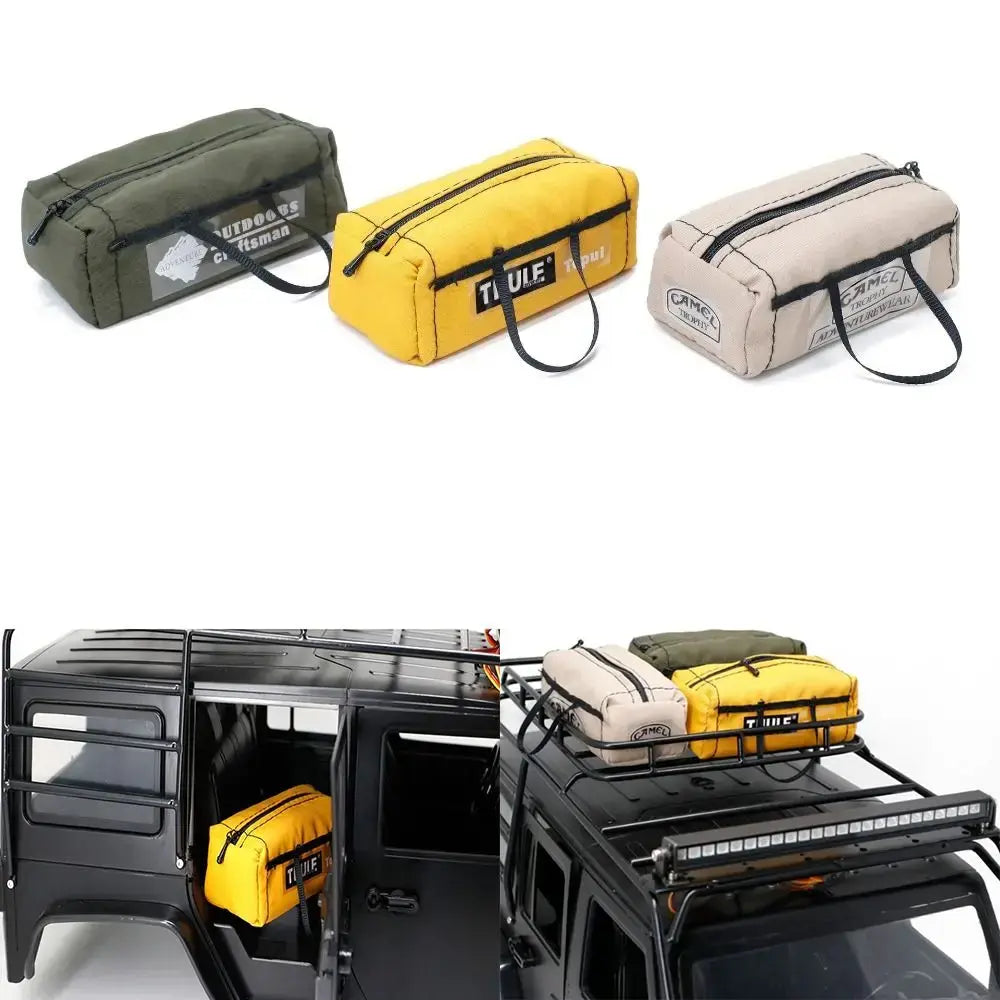 Enhance your 1/10 climbing car with our New Decorations Rooftop Luggage Storage Bag. Perfect for adding a realistic touch to your RC adventures, this accessory simulates real-life roof storage, making your RC car look ready for any expedition.