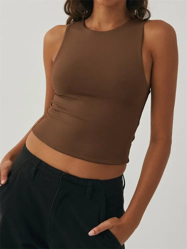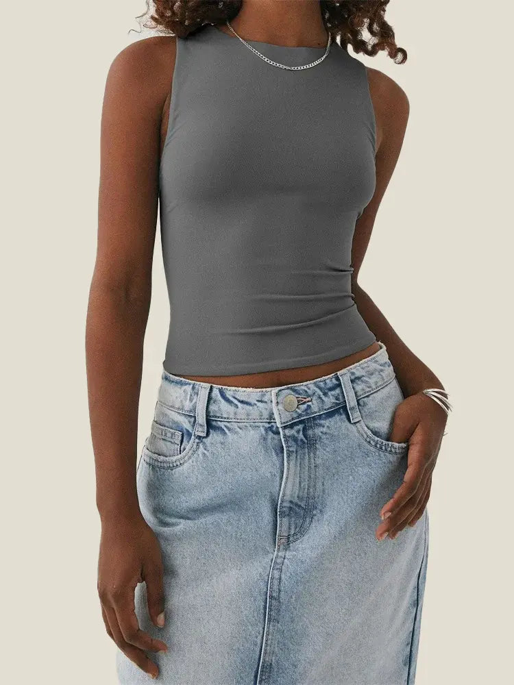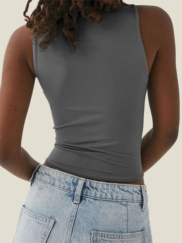 Embrace a tank top that keeps you cool and looking chic year-round. The high neck design adds a touch of sophistication, while the breathable fabric ensures you stay comfortable in any weather.