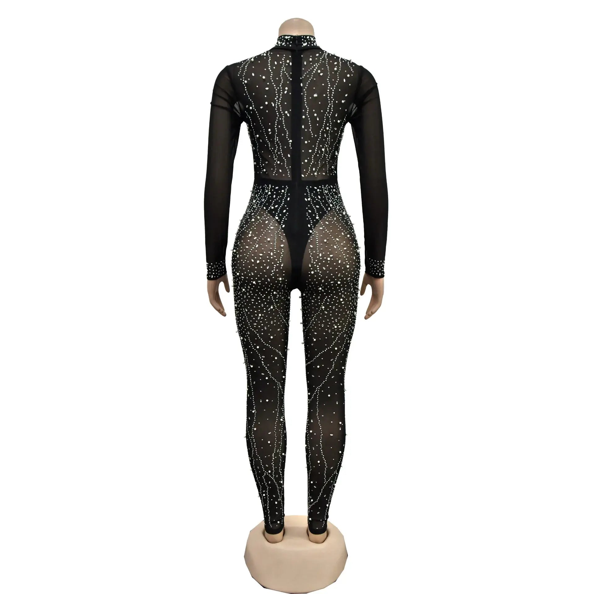 🔥 Step into the spotlight with our Sheer Mesh Diamond Sexy See Through Jumpsuit! 💃
