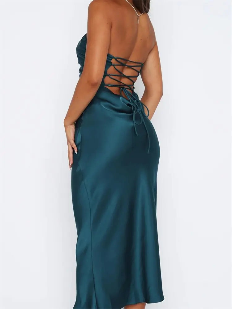 Radiate glamour and sophistication in our Strapless Satin Long Dress, a show-stopping piece that exudes timeless elegance. Whether you're hitting the town or attending a formal event, this dress is sure to turn heads and leave a lasting impression.