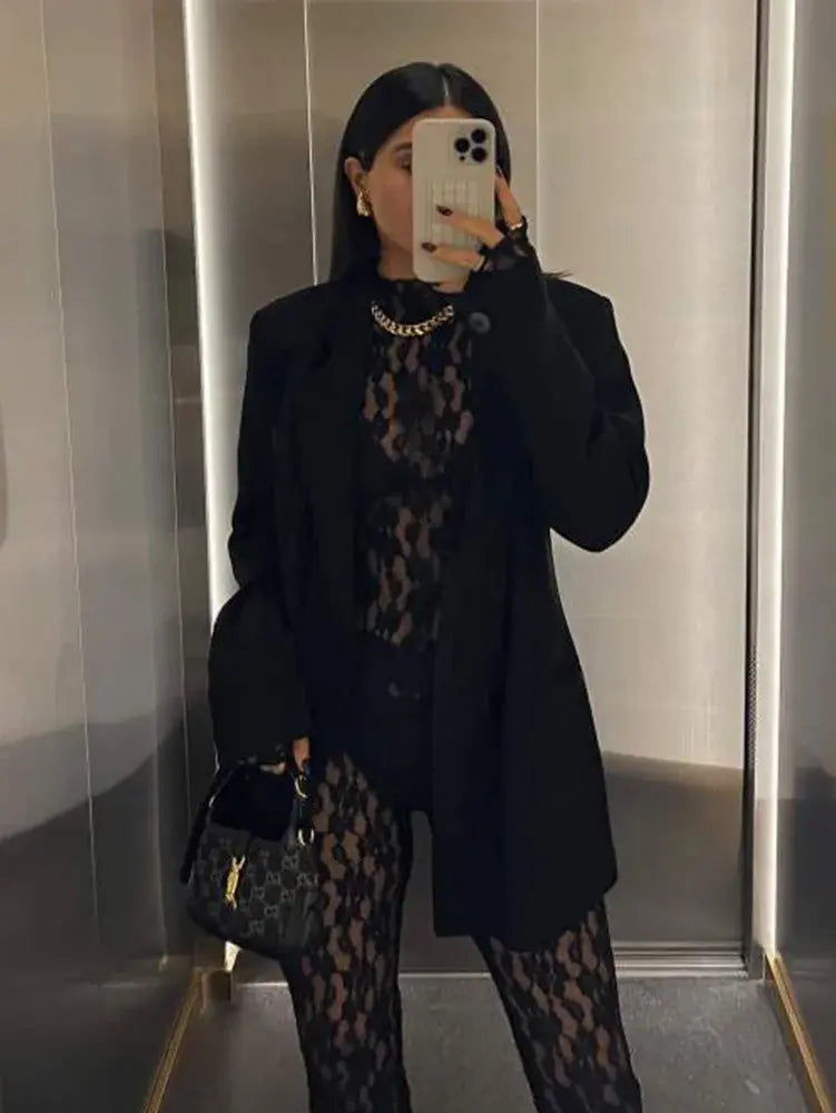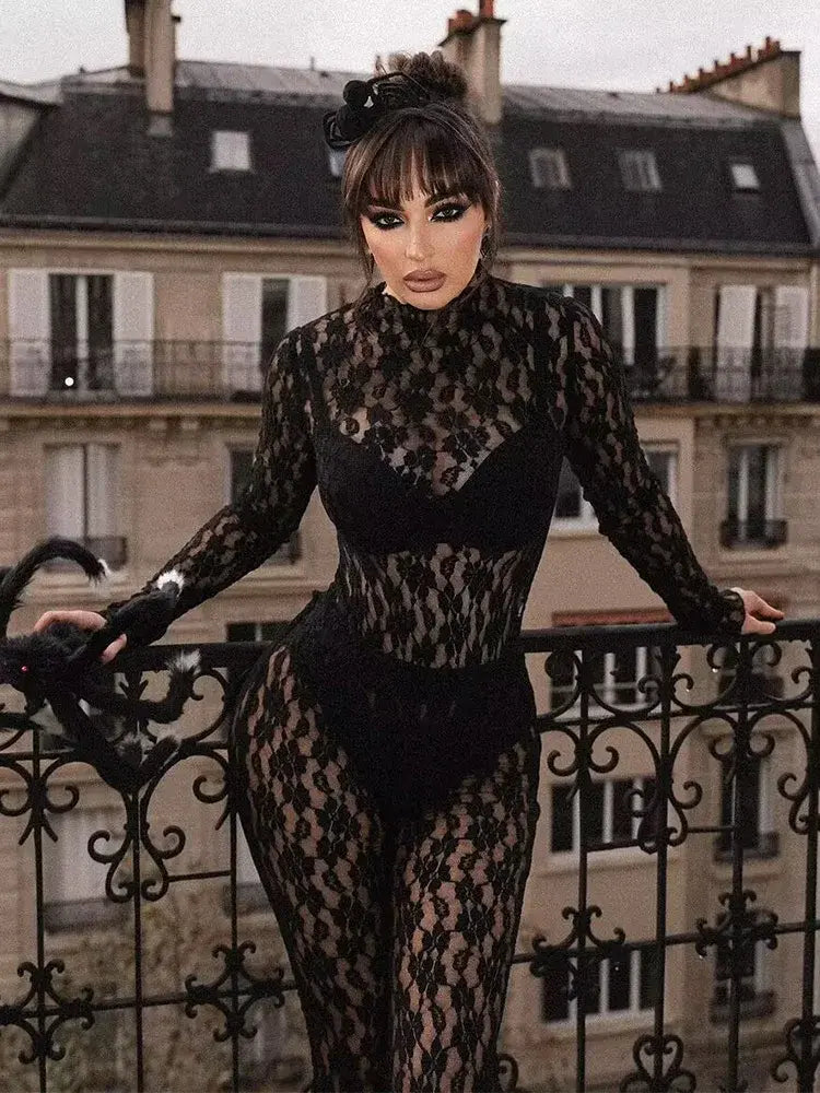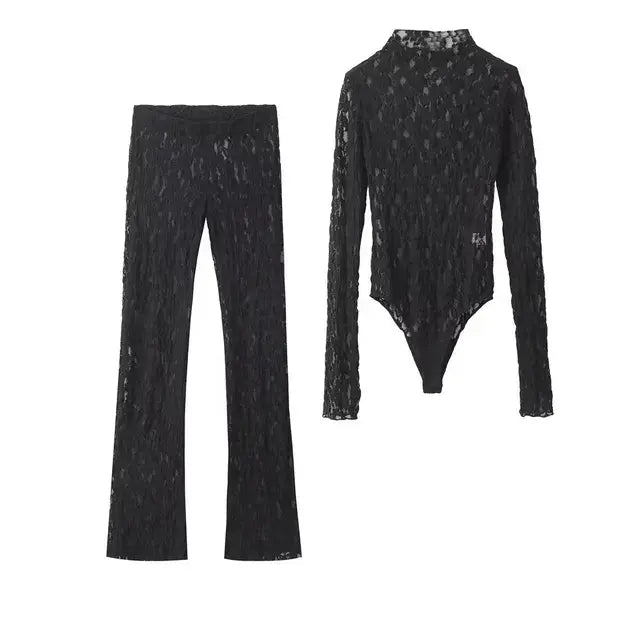 Make a Fashion Statement with Lace Bodysuit Pants Set