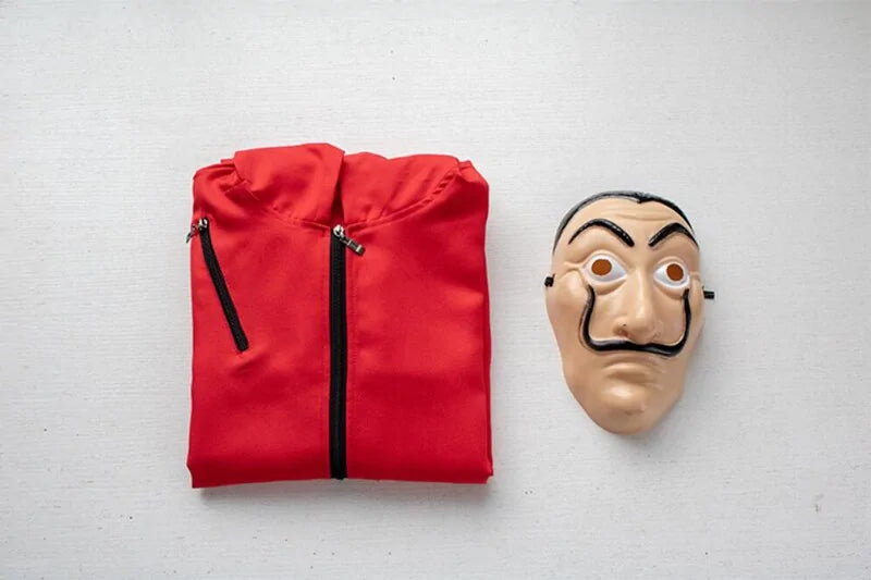 Embrace the essence of The House of Paper with our costume and face mask. Featuring intricate details and quality materials, it captures the essence of your favorite characters, ensuring an authentic and immersive experience.