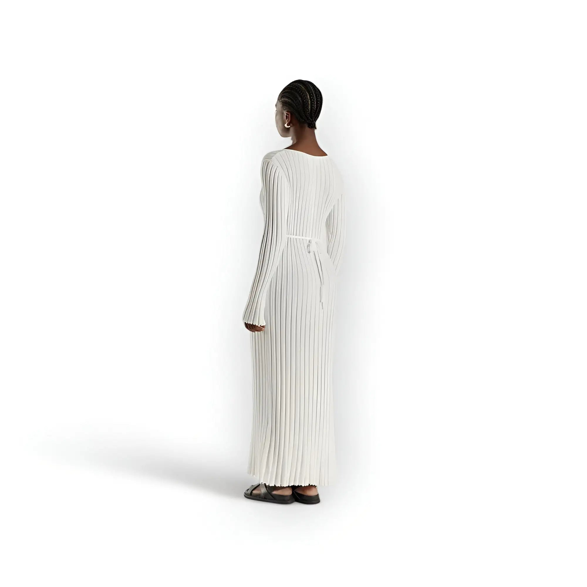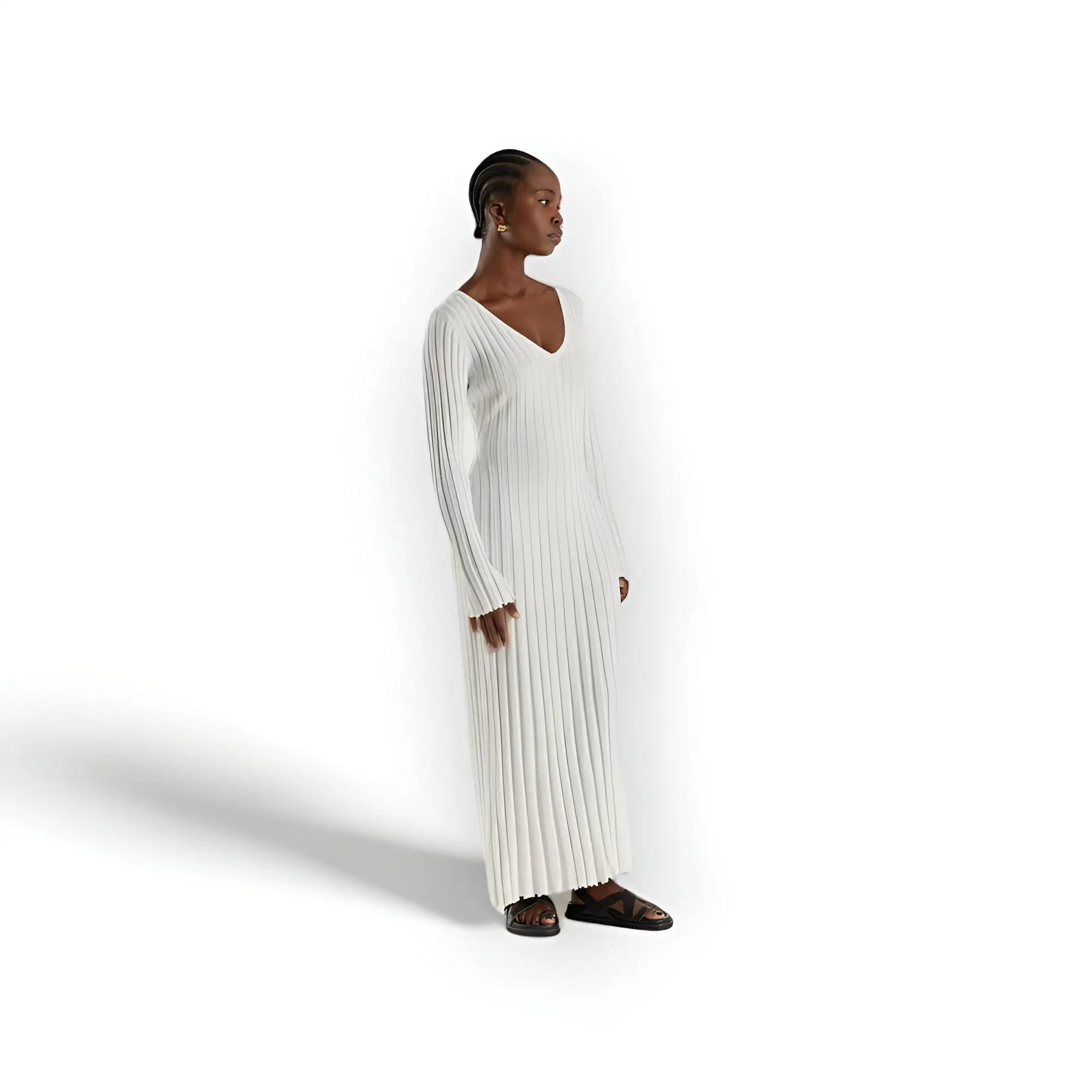 Wrap yourself in luxury with our V-neck Knit Midi Dress. The soft, breathable fabric gently hugs your body, providing an unparalleled feeling of comfort and sophistication. Designed to elevate your look without compromising on comfort, this dress is perfect for any occasion.