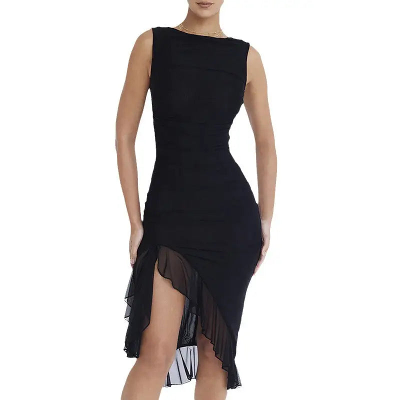 Elevate your evening wardrobe with our Waist Net Patchwork Party Dress. Designed to flatter your figure, this dress features a fitted waist and delicate net accents that add a touch of sophistication. Enjoy the perfect blend of elegance and contemporary style.