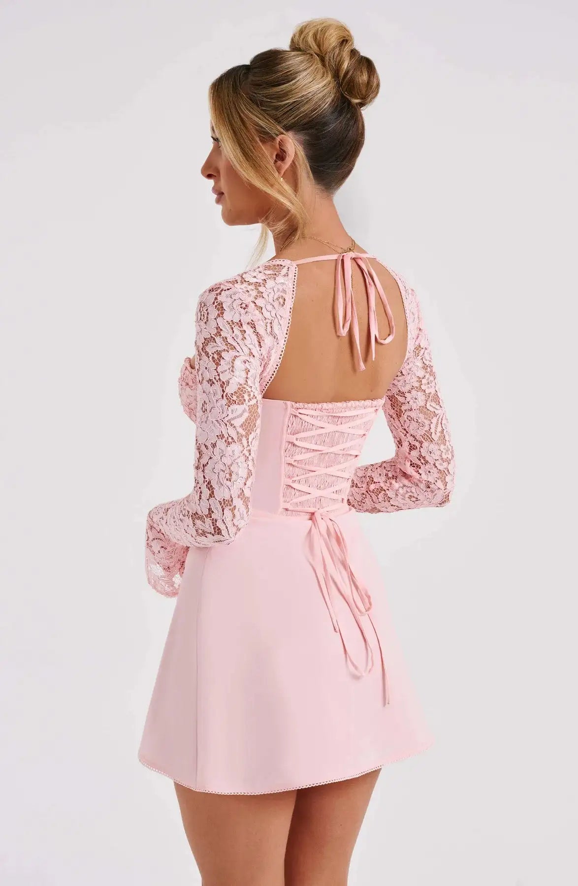 Embrace Timeless Elegance with the Women's Low Cut Mini Sexy Lace Long Sleeve Dress
